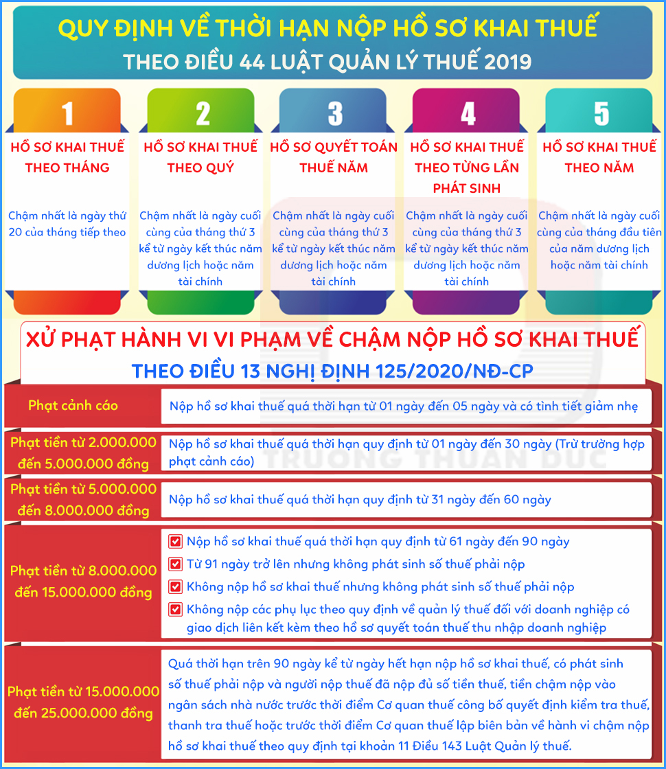 ★ Trường hợp ngày cuối cùng của thời hạn nộp hồ sơ khai thuế trùng với ngày nghỉ theo quy định thì ngày cuối cùng của thời hạn được tính là ngày làm việc liền kề sau ngày nghỉ đó.